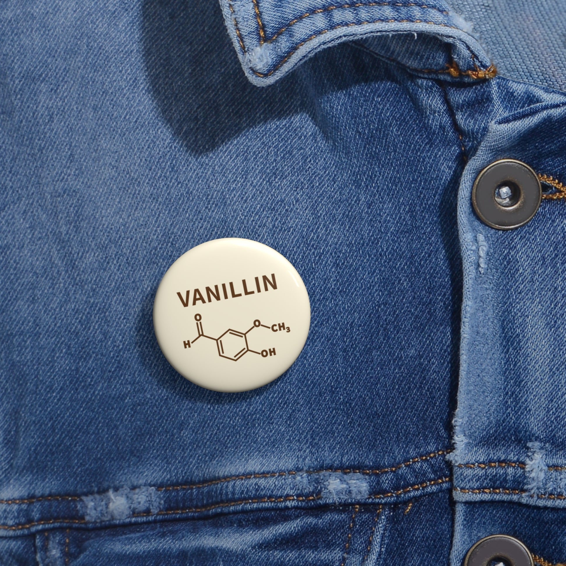 Vanillin Molecule Pin Button — Warmth by Chemistry Badge